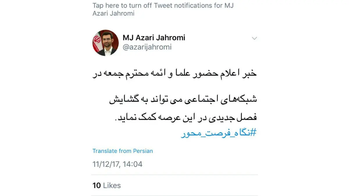 به گزارش گروه سیاسی رکنا، «محمد جواد آذری جهرمی» وزیر ارتباطات و فناوری اطلاعات در توییتر خود نوشت: خبر اعلام حضور علما و ائمه جمعه در شبکه های اجتماعی می تواند به گشایش فصل جدیدی در این عرصه کمک کند. برای ورود به کانال تلگرام ما کلیک کنید.