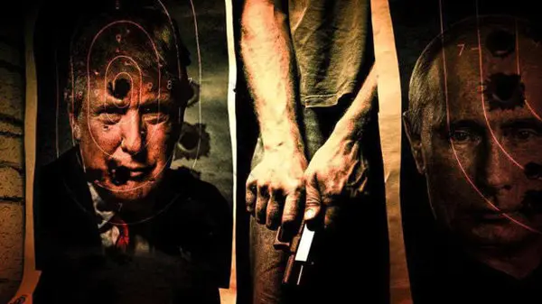 در این پوستر، تصویر ولادیمیر پوتین، رئیس جمهور روسیه به عنوان یکی از مهمترین عوامل نابودی داعش در سوریه نیز هدف گلوله قرار گرفته است.