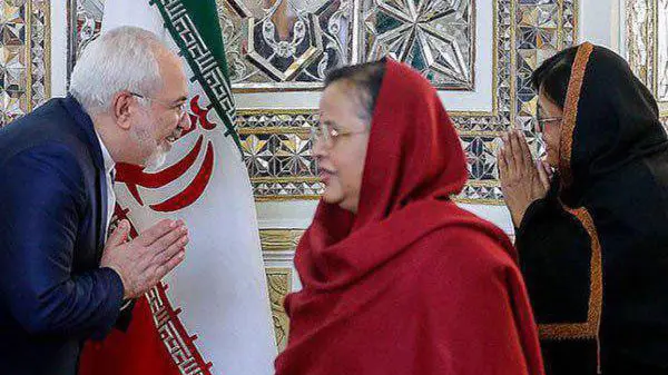 شیوه جالب سلام و احترام ظریف در مقابل خانم دیپلمات هندی + عکس