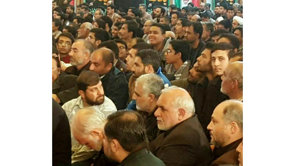 رکنا: سردار سلیمانی در مراسم چهلم آیت الله حائری شیرازی شرکت کرد و در میان مردم نشست.