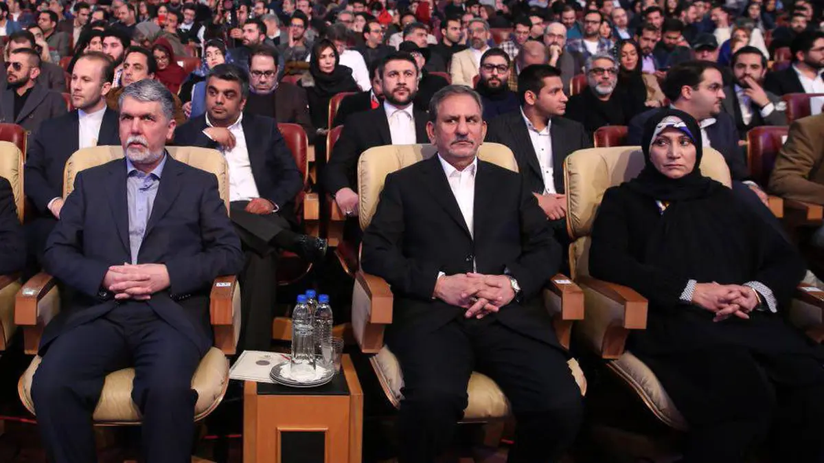 رکنا: اسحاق جهانگیری معاون اول رئیس جمهور و همسرش در مراسم اختتامیه جشنواره فیلم فجر حضور یافتند.