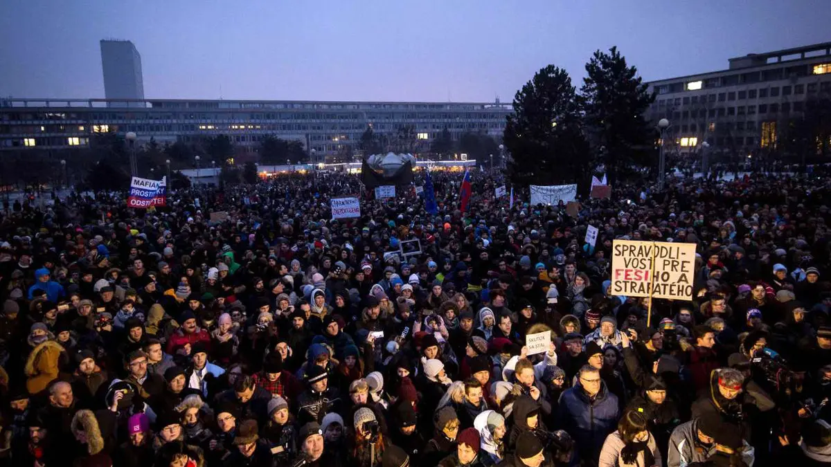 رکنا: مردم براتیسلاوا پایتخت کشور اسلوواکی در اعتراض به کشته شدن یک خبرنگار تجمع کردند.