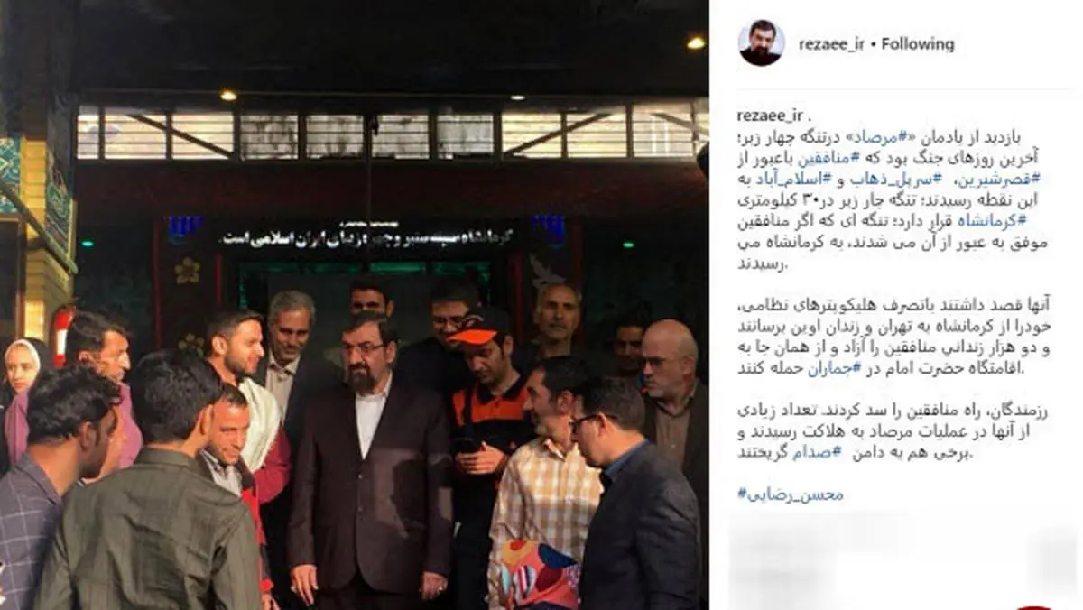 رکنا: محسن رضایی دبیر مجمع تشخیص مصلحت نظام با انتشار پستی در اینستاگرام از عملیات مرصاد یاد کرد.