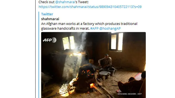عکاس خبرنگاری که صبح امروز در کابل کشته شده بود آخرین عکس خود را با این شرح عکس « یک مرد افغان در کارخانه صنایع دستی سنتی در هرات مشغول به کار است» در توییتر خود انتشار داد. برای ورود به کانال تلگرام ما کلیک کنید.