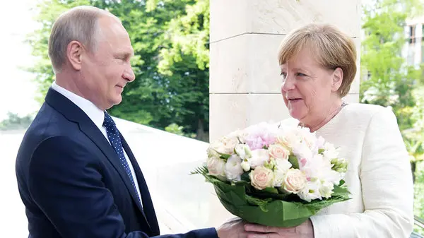 دسته گل جنجالی پوتین برای مرکل + عکس