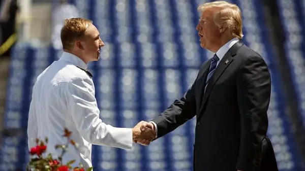 دونالد ترامپ، رئیسجمهوری آمریکا روز جمعه برای سخنرانی در جمع فارغالتحصیلان آکادمی نیروی دریایی وارد مریلند شد و در این مراسم سخنران آغازین بود. با این حال، او پس از پایان سخنرانی خود تصمیم گرفت به جای ترک محل برگزاری مراسم، همانجا باقی بماند و با تکتک فارغالتحصیلان خوشوبش و مصافحه کند.