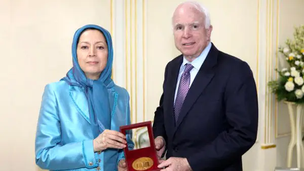 نیت گینگریچ (بالا چپ)، جان بولتون (بالا راست)، جان مک‌کین (پایین چپ) و «رودی جولیانی»، (پایین راست) در کنار سرکرده منافقین