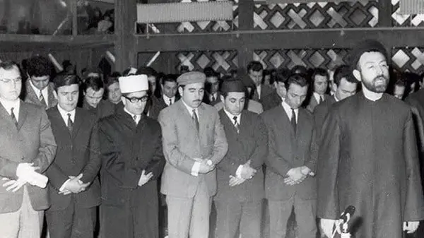 رکنا: عکس زیر اقتدای اهل سنت به شهید بهشتی را در نماز عید فطر در هامبورگ نشان میدهد.