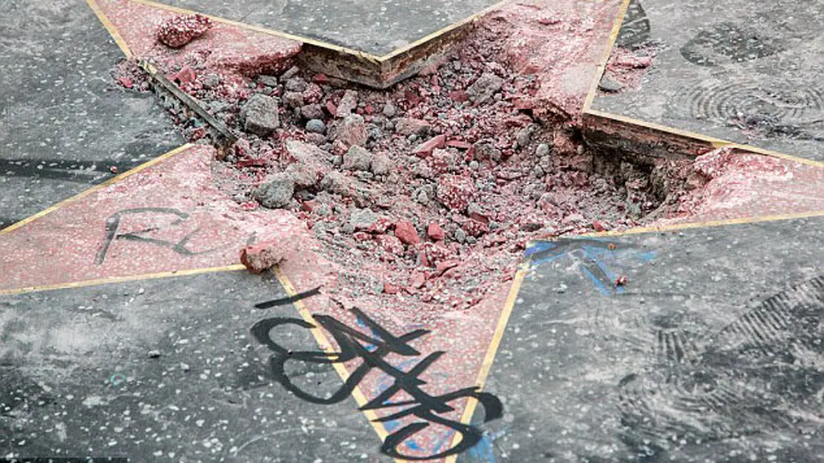 ستاره ترامپ در خیابان هالیوود با تبر خرد شد+ عکس