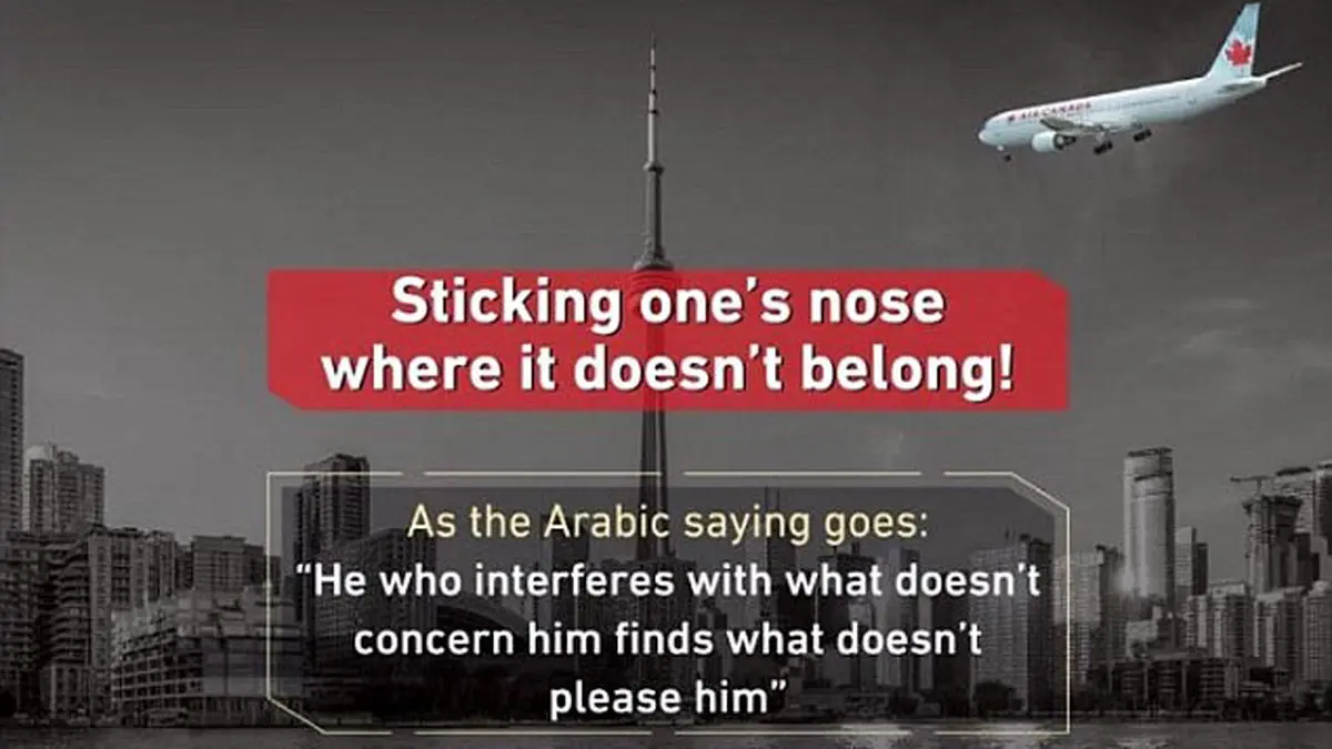 رکنا: حسابی توئیتری وابسته به دولت عربستان سعودی در پی تنش با کانادا عکسی منتشر کرده است که محتوای تهدیدآمیزی مانند 11سپتامبر برای کانادا دارد.