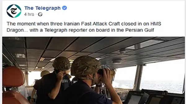پایگاه تلگراف در گزارشی نوشته است که قایقهای تندرو سپاه پاسداران انقلاب اسلامی روز گذشته(دوشنبه) در تنگه هرمز با ناوشکن انگلیسی رو در رو شدند.