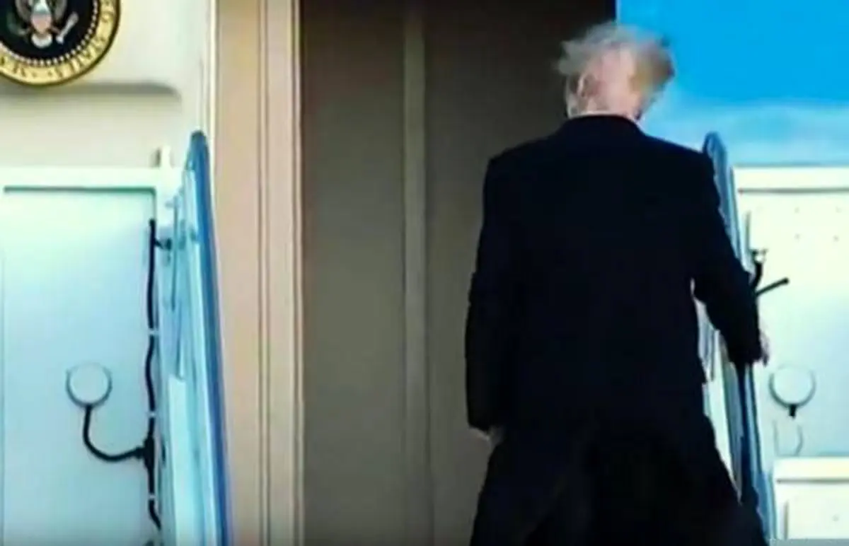 رئیس جمهور آمریکا در یک روز بادی قصد سوار شدن به هواپیما را داشت ، بادی که با وزش بی موقع خود راز پشت موهای دونالد ترامپ را فاش کرد.