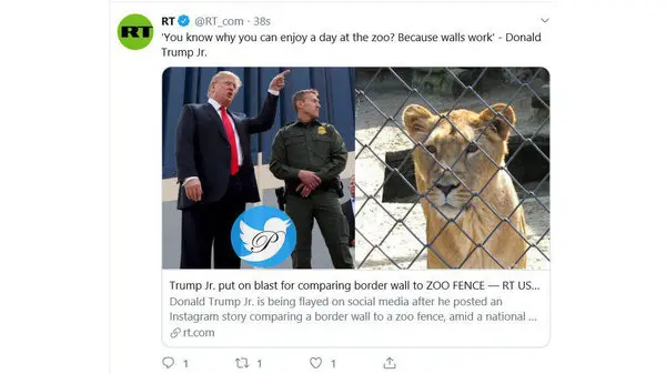رکنا: سخنان پسر ترامپ درباره مقایسه دیوار مرزی با فنس باغ وحش جنجال آفرید.