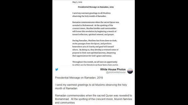 پیام تبریک ترامپ به مناسبت ماه رمضان+عکس