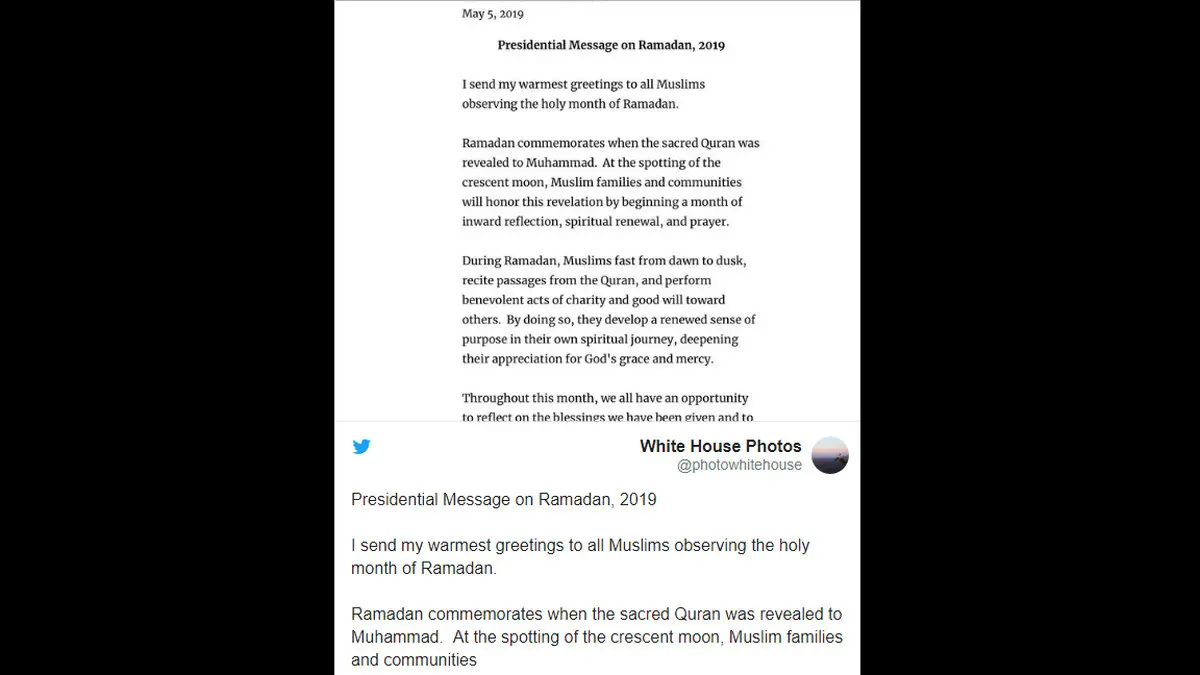 رکنا:ترامپ، هدف از ماه مبارک رمضان را شکر و بخشایش خداوند نامید.