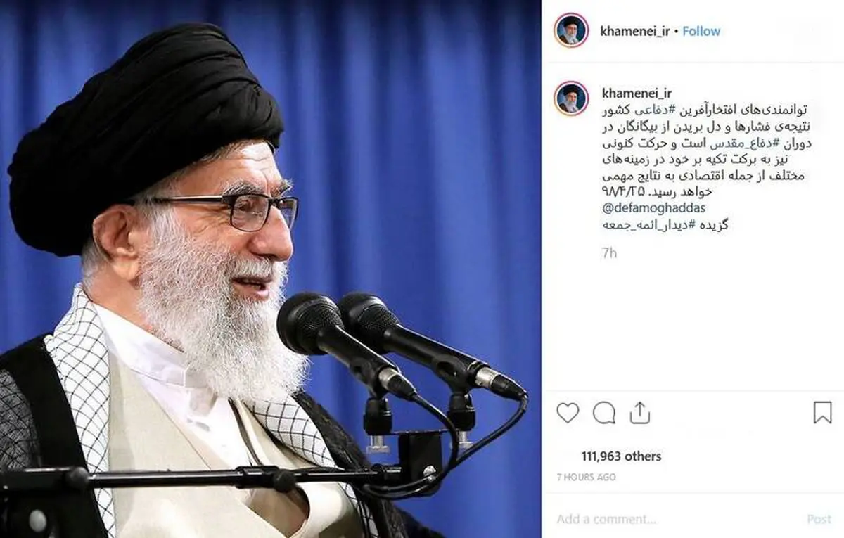 صفحه اینستاگرام منتسب به حضرت آیتاللّه خامنهای با انتشار پستی نسبت به این توقیف واکنش نشان داد.