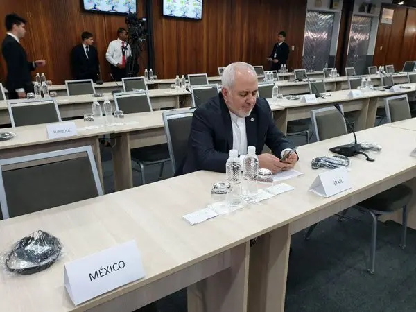 رکنا: ظریف پیش از حضور سایر افراد حاضر در نشست دفاع از منشور ملل متحد و هنجارهای حقوق بین الملل، در این نشست حاضر شد.