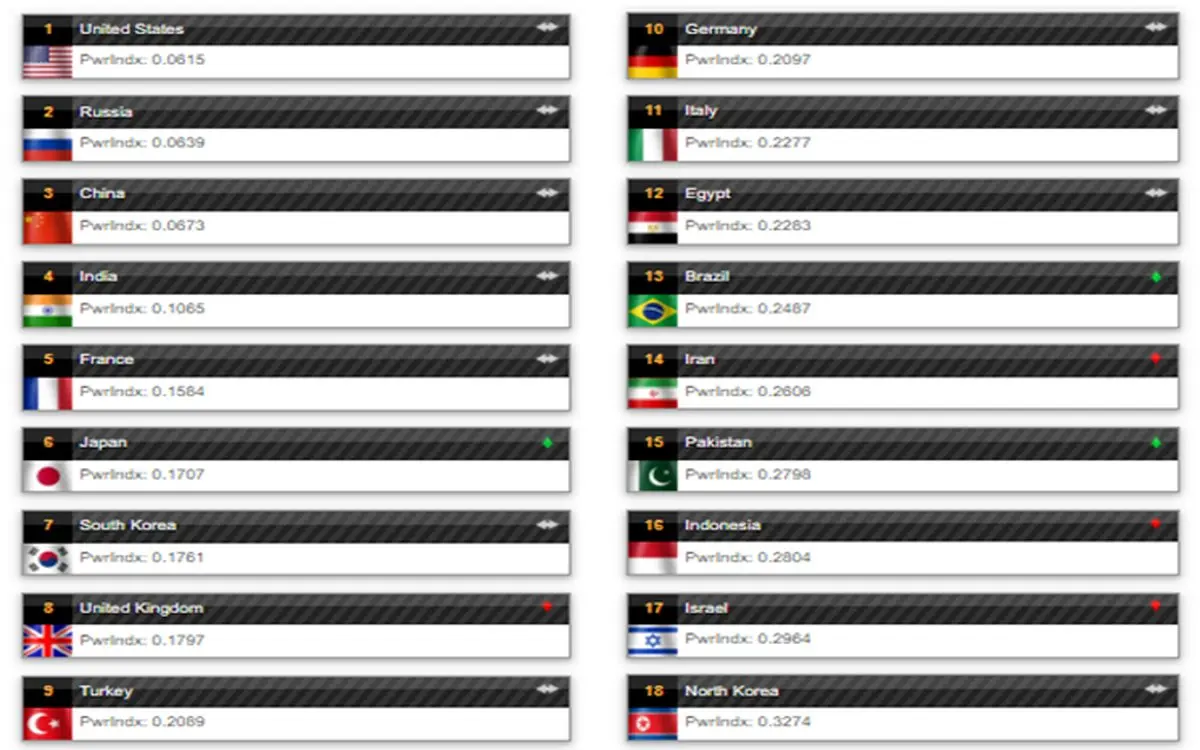 رکنا : پایگاه «گلوبال فایر پاور» فهرست جدیدی از قدرتمندترین کشورهای جهان از لحاظ نظامی منتشر کرد.