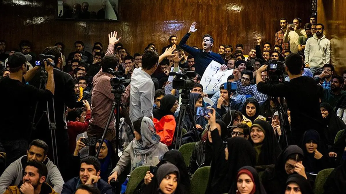 در این زمان یکی از دانشجویان فریاد زد و خطاب به دانشجویان اصلاح طلب گفت: شما یک زمانی از دانشجویان خواستید به این دولت رای بدهند حالا خودتان هم حاضر نیستید پای سخنان سخنگوی این دولت بنشینید!