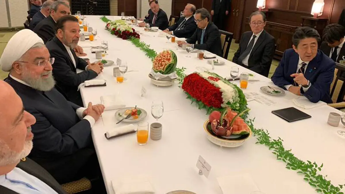 رکنا: توییتر آقای ظریف، این تصویر را به عنوان "پذیرایی یلدایی ژاپن از هیات ایرانی" منتشر کرده است.