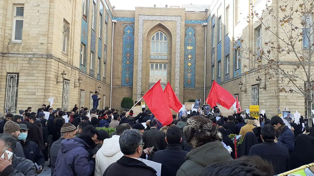 به گزارش رکنا، جمعی از دانشجویان، طلاب و مردم دقایقی پیش (عصر دوشنبه ۷ بهمن ۹۸) در اعتراض به اظهارات اخیر محمدجواد ظریف وزیر امور خارجه درباره امکان مذاکره با آمریکا حتی پس از ترور سردار سپهبد قاسم سلیمانی فرمانده شهید نیروی قدس سپاه توسط این کشور مقابل ساختمان وزارت خارجه تجمع کردند.