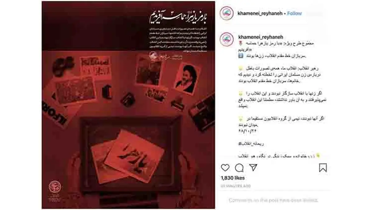 رکنا: صفحه اینستاگرامی که منتسب به حساب رسمی بخش زن، خانواده و سبک زندگی در نگاه رهبر انقلاب است٬ با انتشار پستی در صفحه خود جایگاه زنان در انقلاب را مشخص کرد.