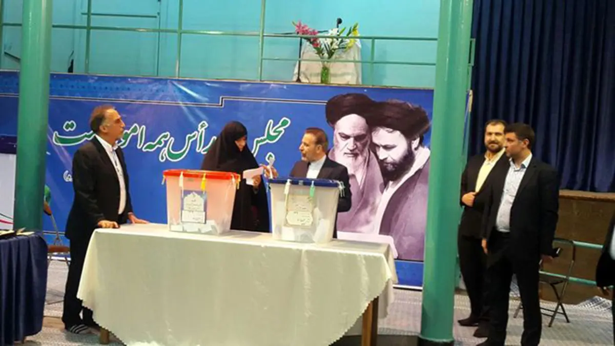 تصویر رییس دفتر رییس جمهور به همراه همسرش در پای صندوقهای رای