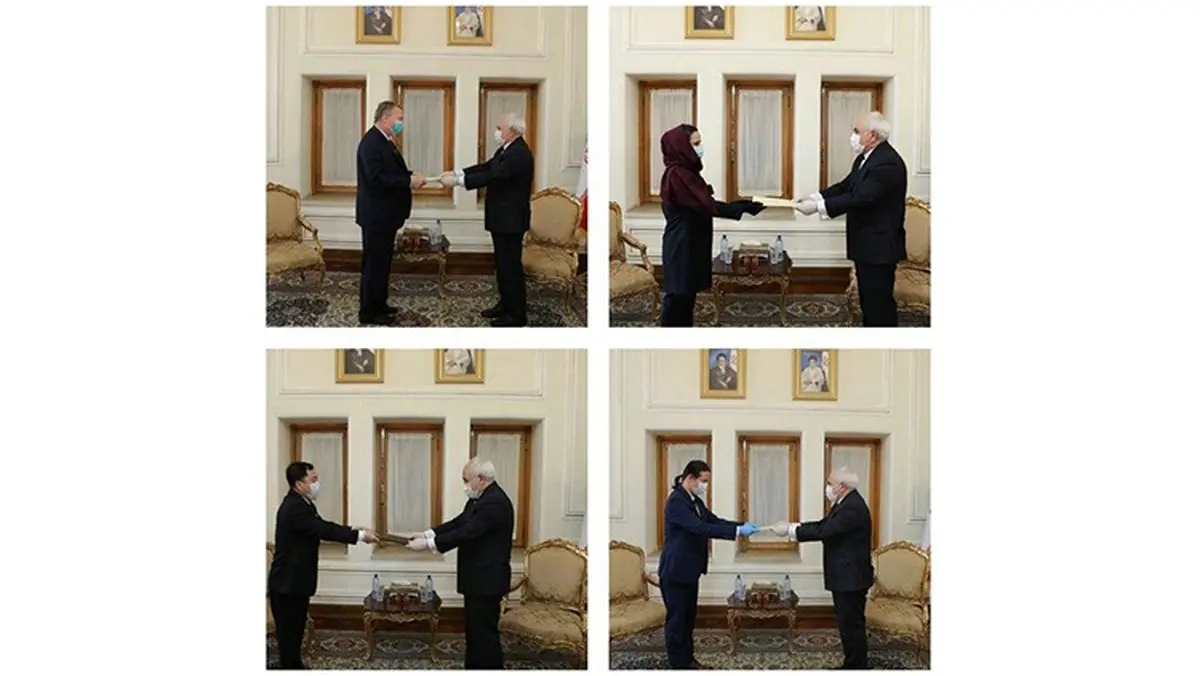 دیدار سفرای چند کشور و ظریف در تهران با فاصله کرونایی + عکس