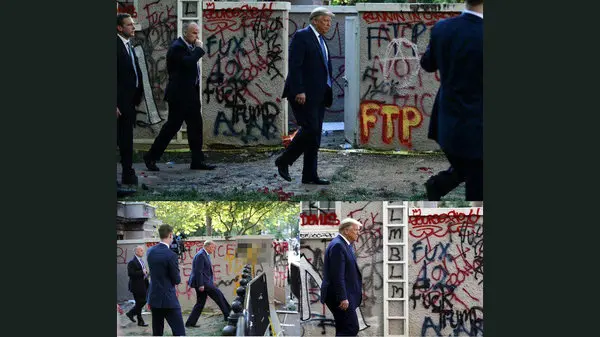رکنا : ترامپ وقتی از کنار دیواری پر از توهین علیه خودش گذشت هیچ توجهی به آنها نکرد.