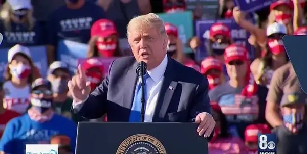 رکنا: رئیسجمهور آمریکا در یک سخنرانی در جمع هوادارانش نتیجه نظرسنجیهای انتخاباتی را رد کرد.