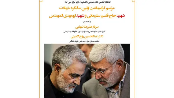 رکنا: مراسم اولین سالگرد شهادت سردار سلیمانی به صورت مجازی توسط اتحادیه انجمنهای اسلامی دانشجویان اروپا برگزار میشود.