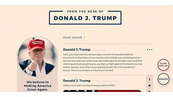 شبکه اجتماعی "From the Desk of Donald J. Trump " در حالی راه‌اندازی می‌شود که فیسبوک قصد دارد طی ساعت‌های آینده تصمیم خود برای تعلیق دائمی صفحه ترامپ در فیسبوک و اینستاگرام را اعلام کند.
