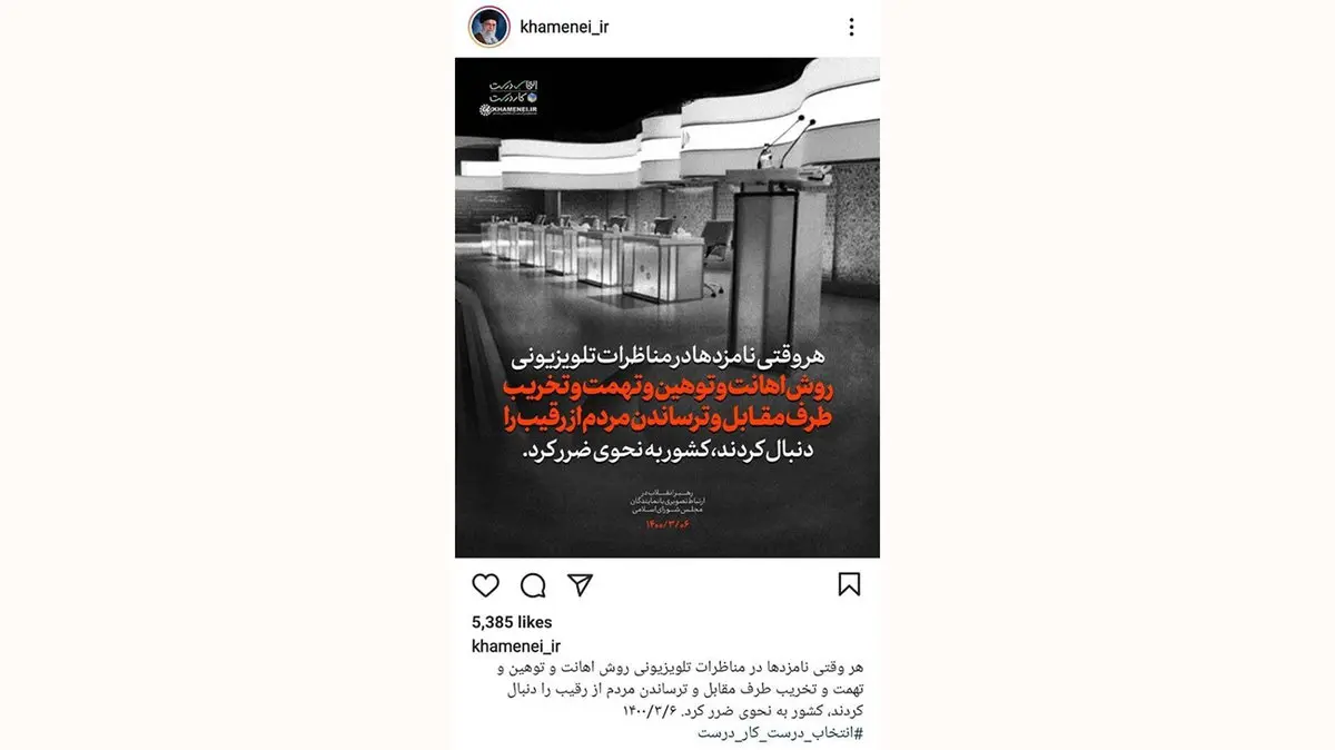 واکنش رهبری به اهانت ها در مناظره انتخاباتی