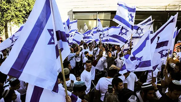 راهپیمای صهیونیست ها با پرچم در سرزمین های اشغالی + عکس