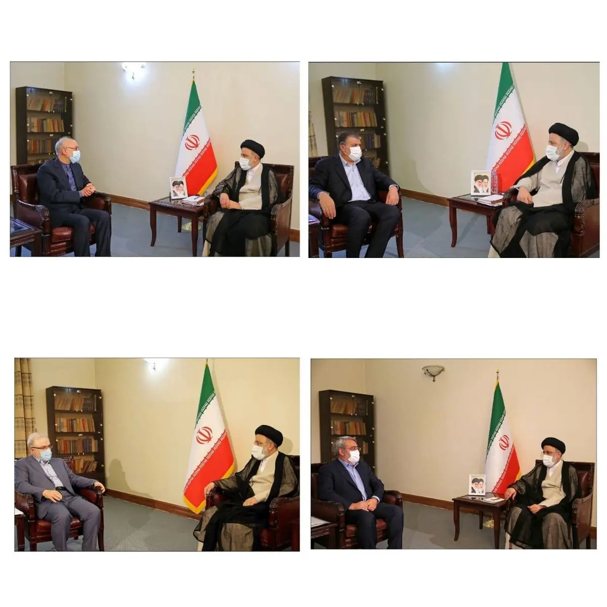 به گزارش رکنا , عبدالرضا رحمانیفضلی وزیر کشور، سعید نمکی وزیر بهداشت و درمان، محمد اسلامی وزیر راه و شهرسازی ، علی اکبر صالحی رئیس سازمان انرژی اتمی و محمد نهاوندیان معاون اقتصادی دولت دوازدهم با حضور در دفتر حجتالاسلام سید ابراهیم رئیسی بهصورت جداگانه با وی دیدار کردند.