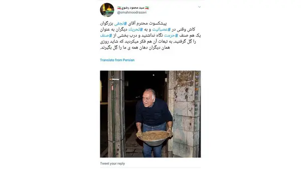 سیدمحمود رضوی تهیه کننده سینما Cinema در واکنش به اقدام غیرمتعارف شب گذشته احمد نجفی و گِل گرفتن در شورای صنفی نمایش در توییتی نوشت: پیشکسوت محترم آقای نجفی بزرگوار، کاش وقتی در عصبانیت و به تحریک دیگران به عنوان یک هم صنف حرمت نگاه نداشتید و درب بخشی از صنف را گِل گرفتید، به تبعات آن هم فکر می کردید که شاید روزی همان دیگران دهان همه ی ما را گِل بگیرند.