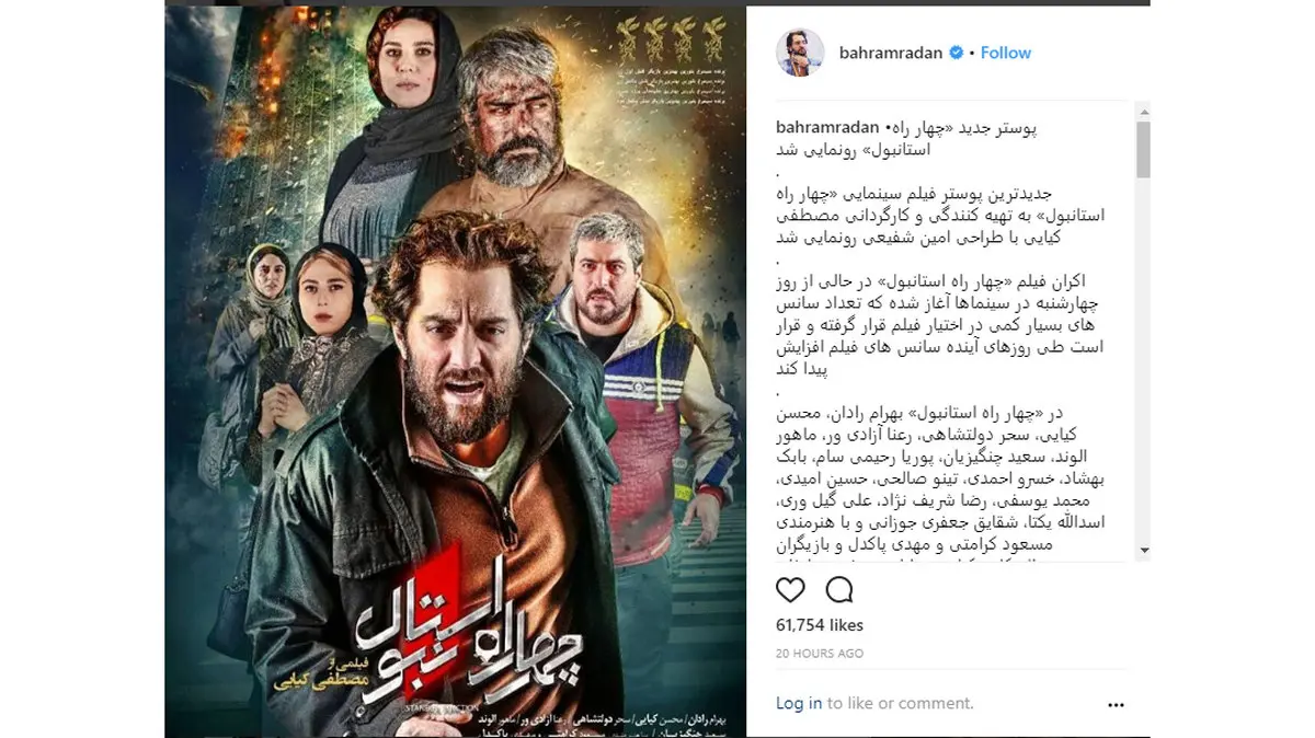 رکنا: بهرام رادان در اینستاگرام خود از پوستر جدید چهارراه استانبول رونمایی کرد.