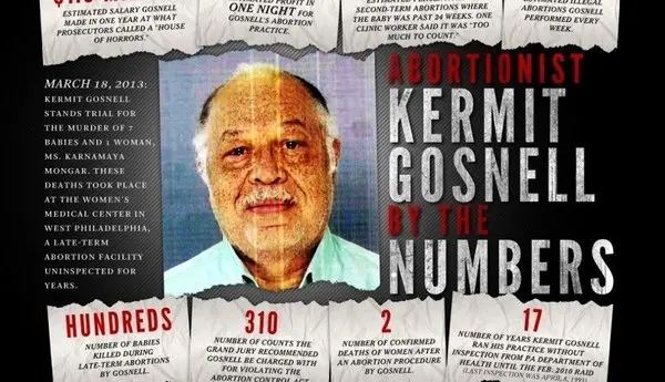 دکتر گاسنل که از اوایل دهه 1970 یک کلینیک سقط جنین را در پنسیلوانیا راهاندازی کرده بود، بارها متهم به سقط غیرقانونی در شرایط غیربهداشتی شده بود. تا اینکه سرانجام سال 2011 به اتهام قتل Murder هفت جنین در آخرین ماههای بارداری دستگیر و دو سال بعد محکوم شد. یکی دیگر از جرایم این پزشک جنایتکار، کشتن Killing غیرعمد کارنامایا مونگار در 2009 بود که ظاهرا برای انداختن جنین خود به کلینیک مراجعه کرده بود.