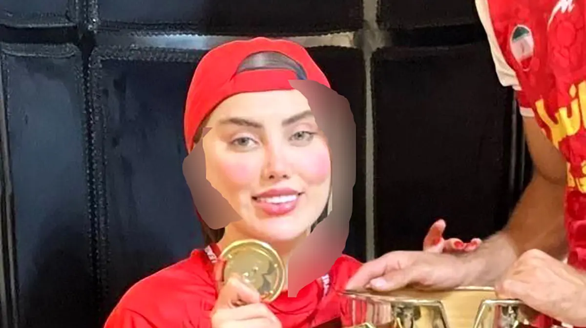 فرشاد فرجی مدافع پرسپولیس جام قهرمانی را به خانهاش برد و با همسرش که شباهت زیادی به سحر قریشی دارد عکس گرفت.