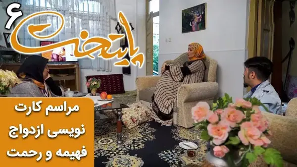 در ادامه سکانس خنده داری از سری ششم سریال پایتخت را می بینید که در آن فهیمه، بهروز، رحمت و هما بر سر کارت نویسی ازدواج «فهیمه و رحمت» گفتگوی بامزه ای را به نمایش می گذارند.