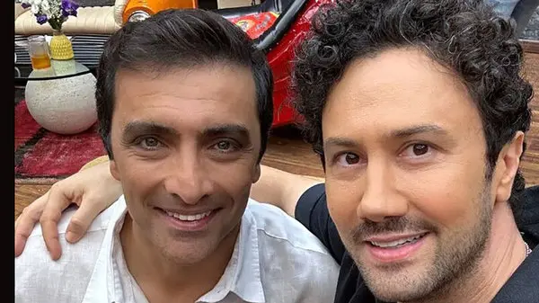 ژست صمیمی شاهرخ استخری و پدرخانم بسیار جوانش در طبیعت زیبای بلژیک/ چه مادر زن خوش انرژی و باکلاسی هم دارن ماشاءالله