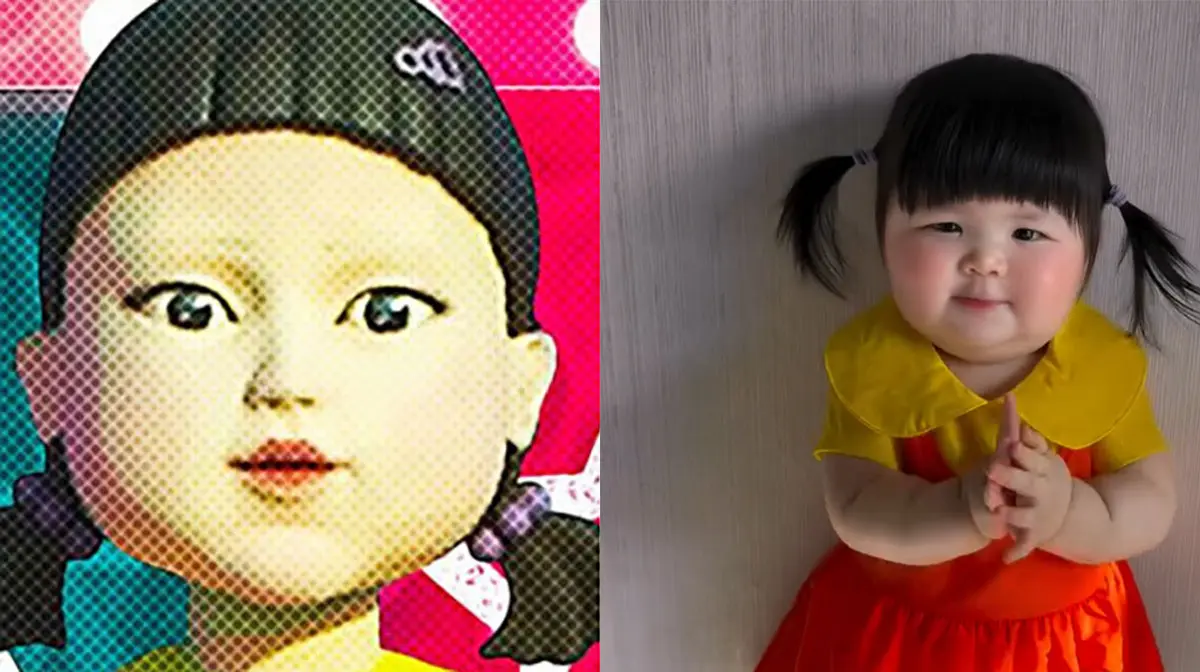 ویدویی از کودک بامزه کره ای که شبیه عروسک سریال بازی مرکب است در فضای مجازی سوژه شد