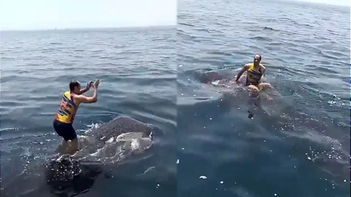 فیلم کوسه سواری جوان بوشهری در خلیج فارس با آهنگ هلل یوس هل یوسه ... / این خلیج تا ابد خلیج فارسه و قلمروی بچههای جنوب ایران!