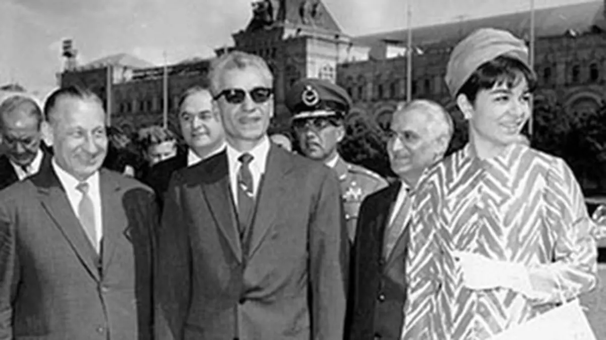 تصویری تاریخی از ۳۰ خرداد ۱۳۴۴، لحظه ورود محمدرضا پهلوی به فرودگاه بینالمللی مسکو را به هنگام سفر به شوروی به تصویر میکشد.