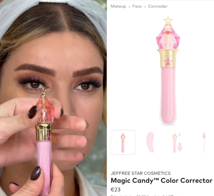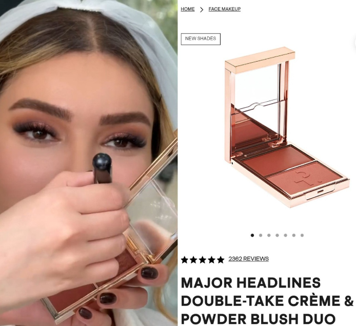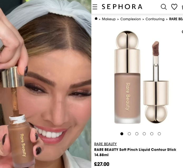 برای تکمیل کانتورینگ، از کانتور برند «رِر بیوتی» نیز بهره گرفته شد. قیمت این محصول نیز در حدود 4 میلیون تومان است. ترکیب این دو محصول، تعادل رنگی مناسبی ایجاد کرد و به صورت متین، بُعد و عمق بیشتری بخشید. نتیجه، ظاهری حرفهای و کاملاً هماهنگ بود که به زیبایی در قاب دوربین نشست.