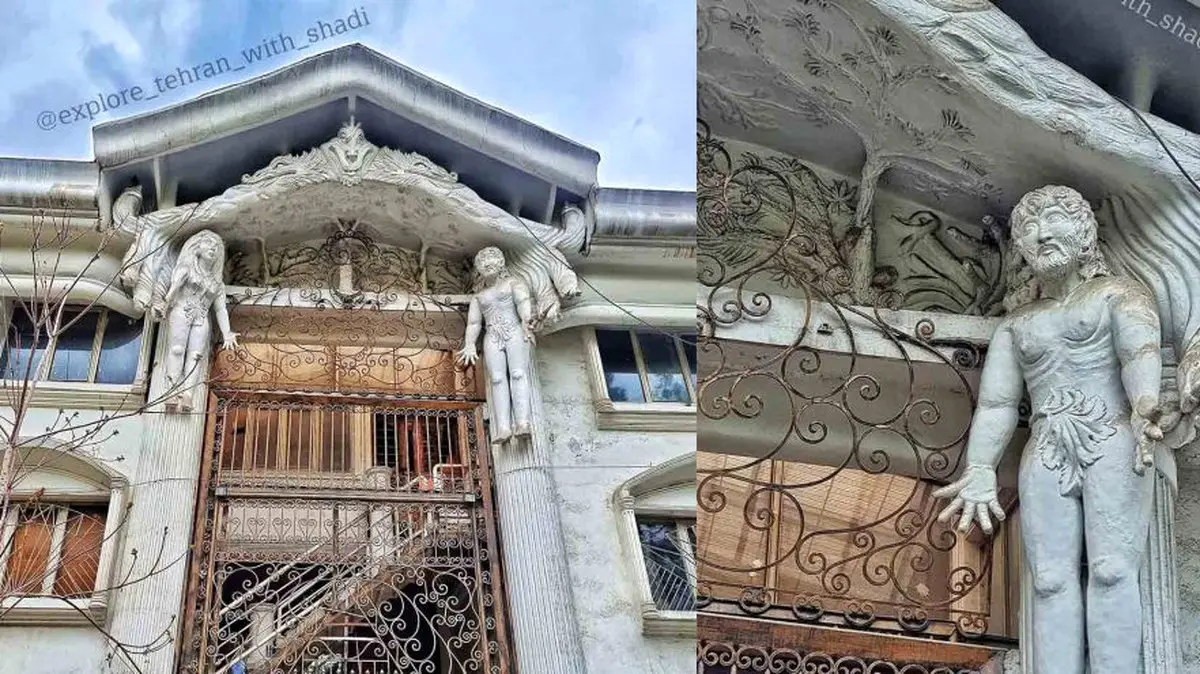 خانه مرموز اینجا تهرانه، خونه‌ای پر از رمز و راز که در شمال تهران ساخته شده و در موردش هزاران داستان عجیب و غریب گفته شده. داستان‌هایی از اینکه این خونه برای چی ساخته شده و ازش چه استفاده‌هایی شده. اینکه این قصه سرایی‌ها در مورد این خونه واقعیه یا نه رو نمیدونیم و نمی‌تونیم تایید کنیم. اما چیزی که در حقیقت انکارناپذیره اینه که این خونه در طراحی و معماری المان‌های عجیب غریبی رو تو خودش جا داده که باعث شده جذابیت و هیجان تماشای اون دوچندان بشه. به محض اینکه نگاهتون به سردر این خونه بیفته، تمثالی از آدم و حوا به چشمتون میخوره که زیر دستان شیطان گیر افتادن و درختان سیب هم اونا رو محاصره کردن و هر انگشت شیطان هم ماری است که در حال حرکت و دیوارهای پوسته‌پوسته شده‌اش آدم رو یادفیلم‌های ترسناک میندازه.