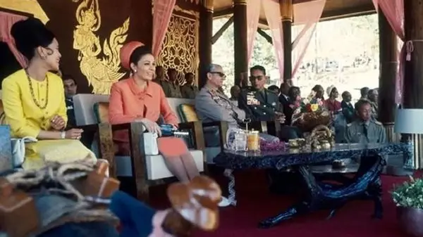 در ادامه تصویری کمتر دیده شده از محمدرضا پهلوی و همسر سوم اش، فرح دیبا را در حال قدم زدن در بانکوک و در سال 46 می بینید.