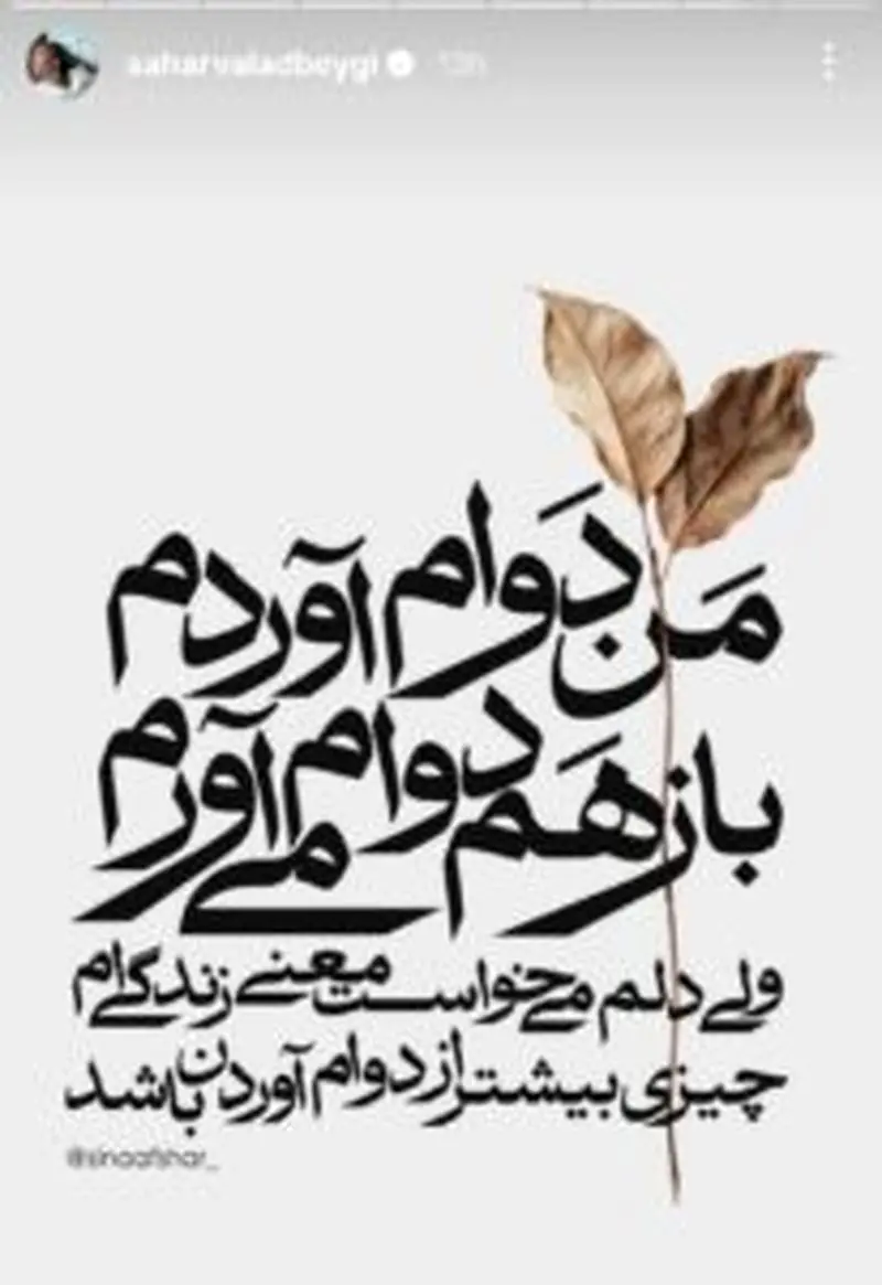 استوری تأملبرانگیز سحر ولدبیگی درباره معنای زندگی : من دوام آوردم و باز هم دوام میآورم...ولی دلم میخواست