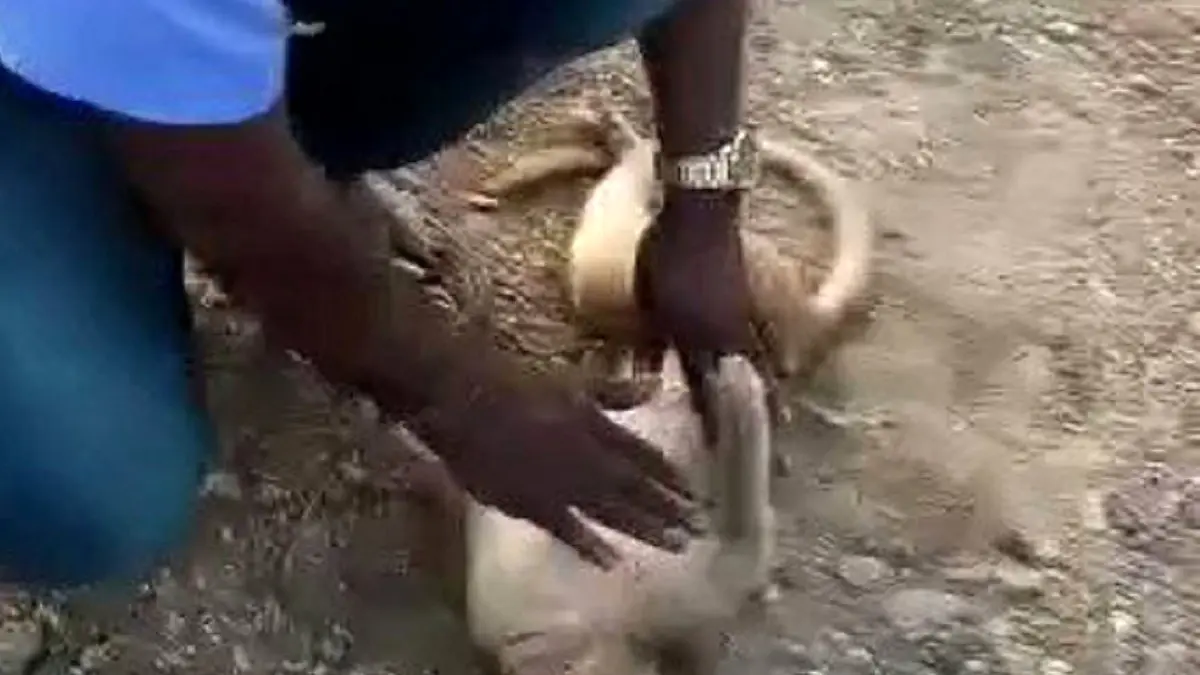 یک میمون که از ترس حمله سگهای ولگرد بیهوش شده بود به کمک یک مرد به زندگی بازگشت.