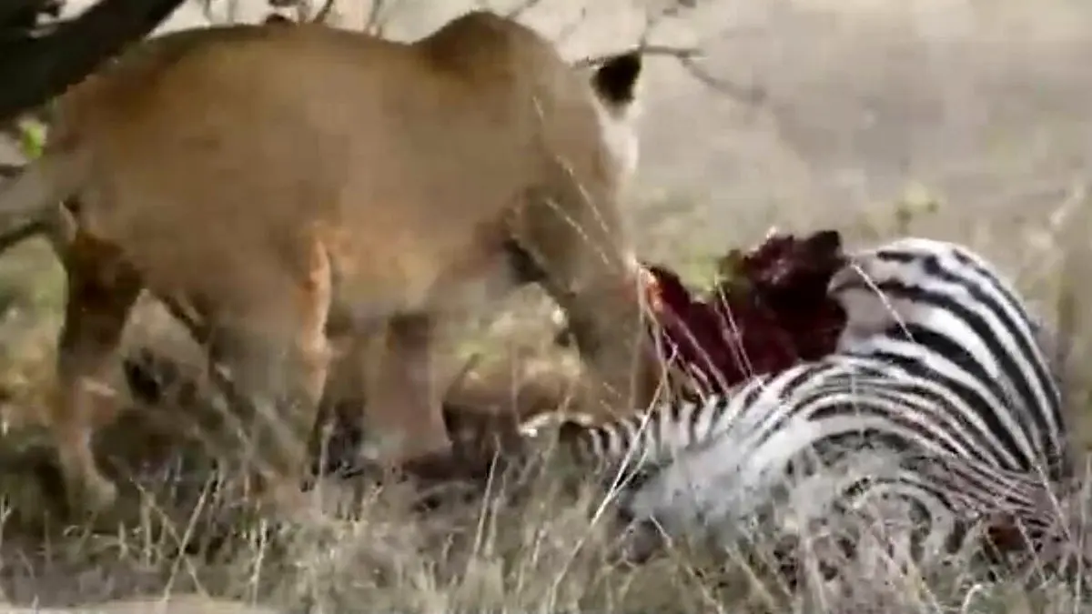شکار گورخر و استراحت شیرها + فیلم